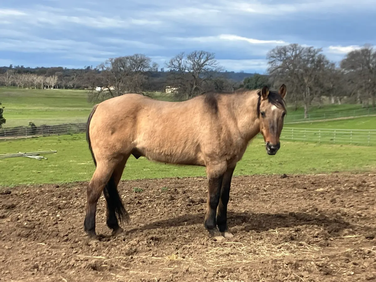 This is Ol Buck. Abandoned at a kind person’s property after someone asked about pasture to feed some horses. He and his paso mare friend (now ‘Serafina') were said to have been owned by a gentleman in a nearby town, who had a heart attack over the winter and nobody was able to get in with the snow to feed the horses.