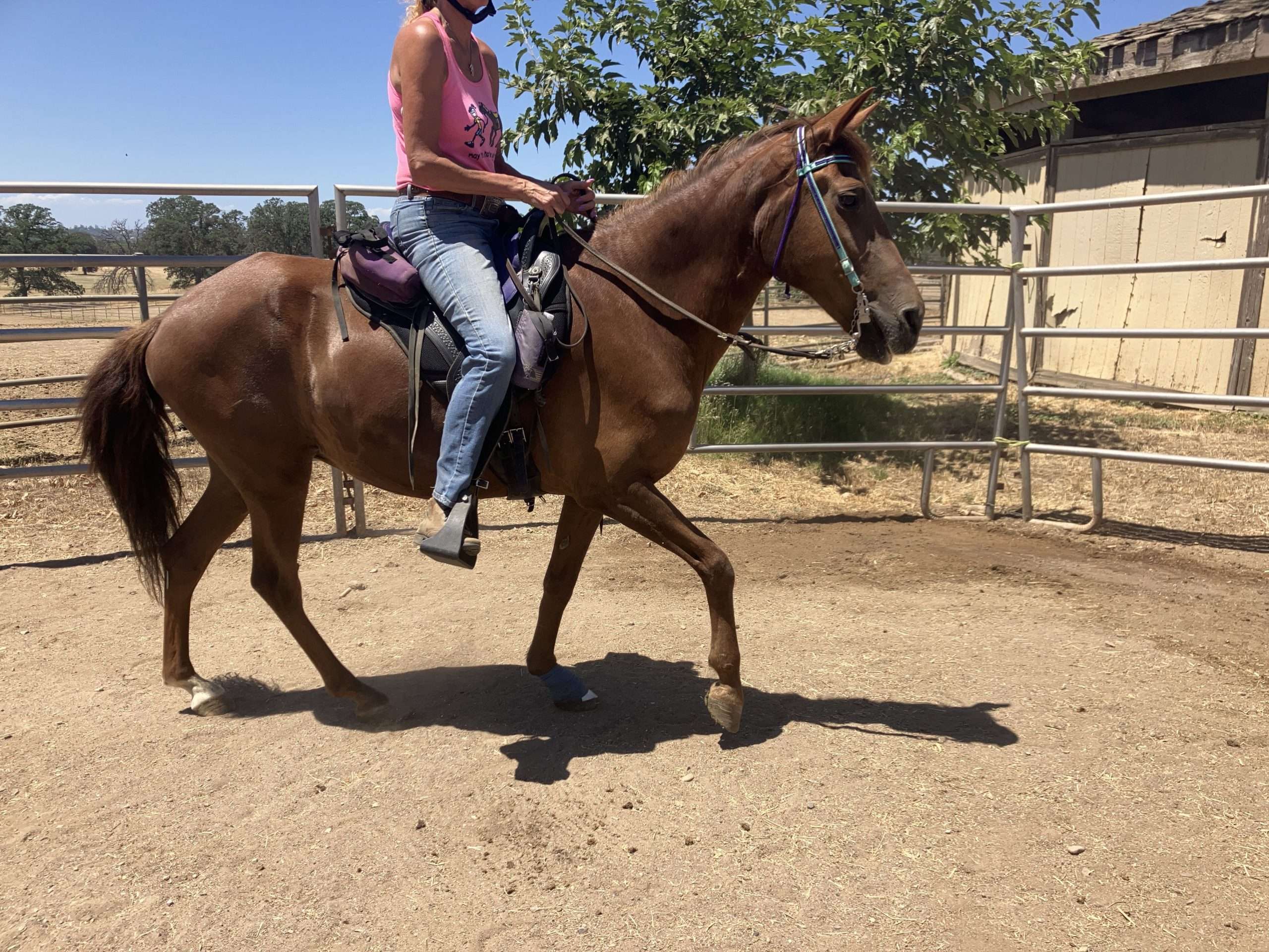 Once we got full weight on her (including vet having floated her teeth, etc.) We put a Peruvian bit on her and hopped on! She is well trained, well mannered and just a lovely little mare. She’s probably 14.3h so decent size for a Paso. We are looking for a light rider who wants to pleasure ride and knows Paso’s as they are a breed different than many!